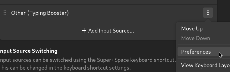 টাইপিং বুস্টার ইনস্টল করা হয়ে গেলে এরপর কম্পিউটার লগ আউট করে আবার লগ ইন করতে হবে। তারপরে সিস্টেমের ইনপুট মেথড কিংবা কিবোর্ড সংক্রান্ত সেটিংস থেকে টাইপিং বুস্টার সিলেক্ট করতে হবে। যদি আপনার ডিস্ট্রোতে সেটিংস থেকে আইবাসের সেটিংস কনফিগার করা না যায় তবে ibus-preferences থেকে কাজটি করতে হবে। (নিচের ছবি দ্রষ্টব্য)