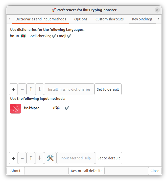 sudo apt install ibus-typing-boosterকমান্ড দিতে হবে। Fedora -তে প্রি-ইনস্টল করা থাকার কথা। আপনি যদি fcitx ব্যবহারকারী হন তাহলে টাইপিং বুস্টার ব্যবহার করতে পারবেন না। - এরপরের কাজ, khipro-m17n এর গিটহাব রিপোজিটরি থেকে